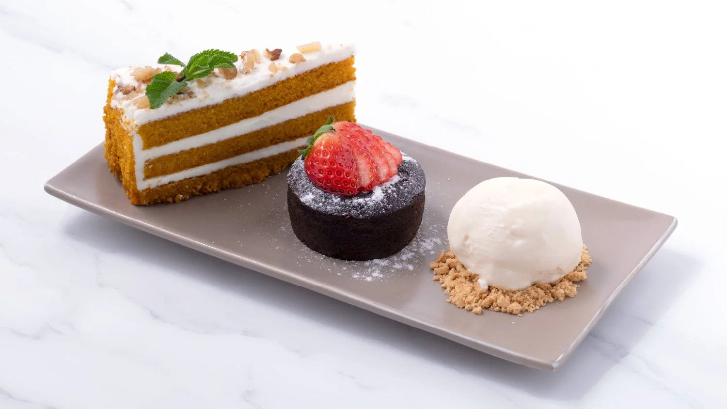 Carrot Cake, Chocolate Lava Cake & ice creamTiramisu