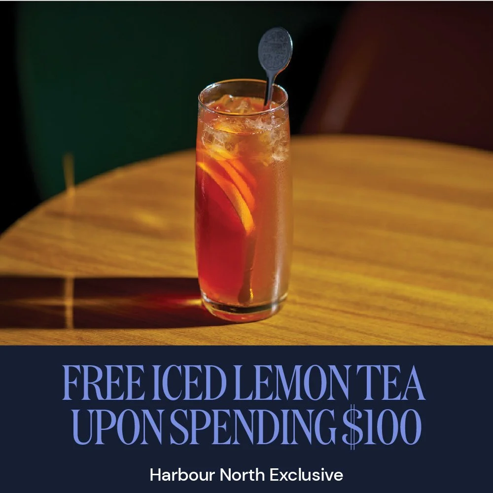 Enjoy a complimentary Iced Lemon Tea upon dine-in spending $100 by presenting an image of the PizzaExpress advertising light box in Harbour North.
